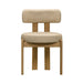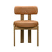 The Odessa Dining Chair delivers retro flair with its Memphis-inspired curves, earthy wood frame, and wipeable vegan leather in cream or saddle brown. High-comfort foam and easy maintenance make it a stylish win for busy spaces.