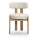 The Odessa Dining Chair delivers retro flair with its Memphis-inspired curves, earthy wood frame, and wipeable vegan leather in cream or saddle brown. High-comfort foam and easy maintenance make it a stylish win for busy spaces.