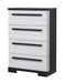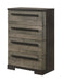 This rustic contemporary bedroom group is the perfect mix of styles to fit in a variety of decors. Heavy woodgrain details are accented with streamlined drawer pulls.