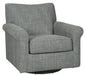 Sporting a tantalizing tweed weave fabric in such a soothing blue hue, this swivel glider accent chair gives the classic roll arm chair a modern twist. Smooth, 360-degree swivel caters to your comfort—and your viewing pleasure. Gentle glider feature is designed to rock your cares away.
