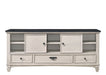 This entertainment console epitomizes timeless elegance, with its classic silhouette and refined antique finish. The 2 toned finish includes detailed molding and vintage-inspired metal hardware, offering a luxurious feel to the room. 2 sliding doors provide access to hidden and open shelving while lower drawers offer even more storage.