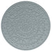 - Features round top with intricately carved detailsn and black metal legs