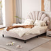 Queen Size Upholstered Platform Bed With Flower Pattern Headboard - Beige