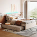 Queen Size Upholstered Platform Bed With Twin Long Trundle - Beige