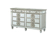 - Elegant Design: This dresser features a mirrored top with raised geometric trim and sunburst motifs, combining elegance with modern design to create a stunning visual impact.