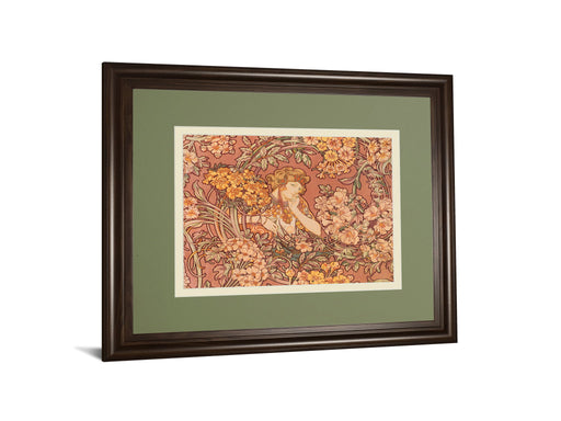 Redhead Among Flowers By Alphonse Mucha - Framed Print Wall Art - Pink