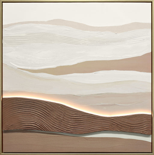 "Desert Glow II" Hand-Embellished LED In Frame - Beige / Brown / White