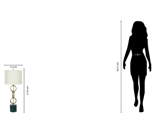 "Marble Harmony" Metal Table Lamp On Marble Base (Set of 2) - Green Marble / Matte Golden Bronze
