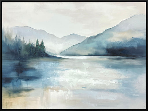 "Misty Lakeview I" Hand-Embellished Canvas In Frame - Blue / Gray