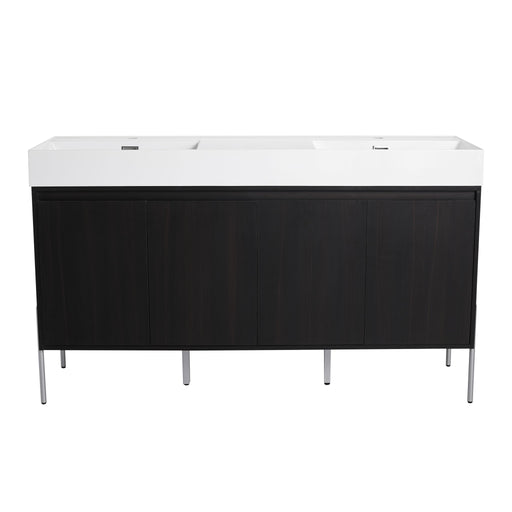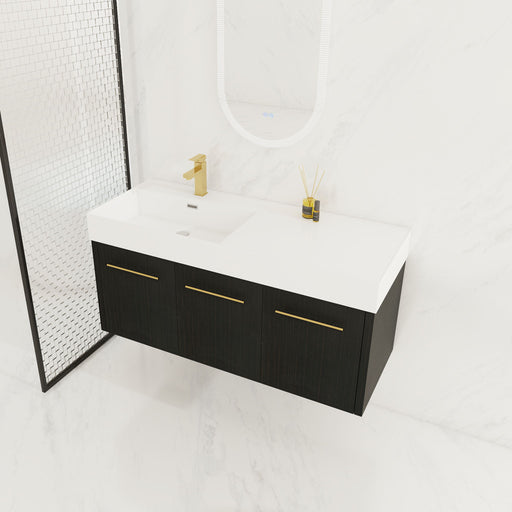 Contemporary 48" Wall Mounted Bathroom Vanity With Resin Sink And Soft Closing Doors And Line - Black Chestnut