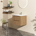 24" Wall Mount Bathroom Vanity Cabinet With - White Basin Sink Combo Floating - Walnut