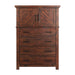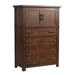 The Jax 5-Drawer Chest is the perfect rustic piece for your bedroom! This vertical chest comes with four, large spacious drawers and one cabinet up top. This rustic chest comes in a rich, cherry color and features distressed markings throughout. Dark bronze drawer pulls make it easy to get to your belongings quickly. Open the cabinet to find a large, open space to store away your bulkier items, such as sweaters. The top drawer is felt-lined keeping your more valuable items protected. Bevel edges and straight legs complete the look of this rustic style chest.