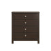 The Sami Chest offers the perfect blend of style and function for your child’s room. The dark wood finish brings a sophisticated and elegant look, while the spacious drawers provide ample storage for clothing and essentials. Featuring smooth center metal glides, each drawer opens effortlessly for easy access. Designed with youth sizing, this set is ideal for kids' rooms, adding a touch of refinement. Stylish nickel knobs offer a modern accent, and the raised base with open feet gives the chest a contemporary feel, making it a practical and chic addition to any bedroom.