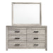 The Ellen 6-Drawer Dresser & Mirror Set in White is the perfect addition to your bedroom. Exposed wood grain detailing and fashioned with rustic-inspired distressing for character. Beautiful black drawer pulls for a modern approach to a rustic look. Features six drawers and dust proofing at bottom drawer for protecting your clothing from dust. The Ellen 6-Drawer Dresser and Mirror Set has a natural-looking aesthetic, perfect for any farmhouse or transitional style bedroom.