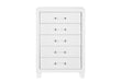 The Luccia 5-Drawer Chest is the epitome of form meeting function in bedroom design. Standing tall with a sleek white finish, this chest is a testament to Global Furniture USA's commitment to elegance and quality. Five drawers offer ample storage, making it an ideal choice for rooms where space is at a premium. The chest is accented with chic acrylic hardware which not only highlights the beauty of the piece but also offers a serene atmosphere. With its clean lines and refined presence, the Luccia 5-Drawer Chest is a perfect addition to any contemporary bedroom setting.