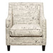 The Erica Chair & Ottoman boasts a refreshing combination of contemporary design with a touch of vintage flare. This chair and ottoman are adorned with chic nail head trim and dressed in a fashionable French Script fabric upholstery.