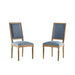 French Country Dining Chairs (Set of 2) Elegant Cane Backrest, Upholstered Seats, Fluted Legs, Rustic - Blue Gray
