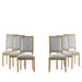 Vintage French Country Dining Chair Set With Cane Backrest, Upholstered Seats - Light Gray