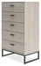 Light and bright, this three-drawer chest is inspired by chic design. A natural finish over replicated oak grain offers an authentic touch to this so-cool piece. Beautifully blend the hues of natural living with the edginess of your modern lifestyle.