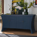 Refined Industrial 4 Door Credenza With Wooden Arc Legs & Bronze Clasps, Advanced Storage Design - Navy Blue