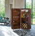 - Fusion of modern techniques and vintage looks can be seen when you come across this xWine Trunk. This chic trunk is vertically shaped and is made from quality material. The type of wood utilized to make this trunk is of great quality. This trunk has a door at the front which opens to double the size of the entertaining area. Inside there are many sections to keep bottles, you can keep vertically and horizontally as well. 8 Horizontal wine bottle rack. 6 Storage shelves. There are three drawers also inside that can hold bar accessories etc.