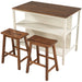 Rustic 3 Piece Stationary Kitchen Island Set With 2 Seatings, With 2 Open Shelves