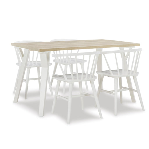 Home EssentialsSleek Rectangular Dining Set: This stylish set includes a rectangular dining table and 4 matching Windsor chairs, perfect for modern dining space...