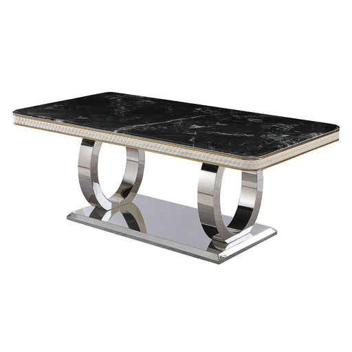 Luxury Modern Dining Table With 6 Chairs Marble Top Titanium Plated Base - Black