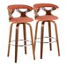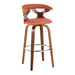 Gardenia - Mid-Century Modern Fixed Height Barstool With Swivel With Round Footrest (Set of 2) - Walnut / Orange