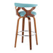 Gardenia - Mid-Century Modern Fixed Height Barstool With Swivel With Round Footrest (Set of 2) - Walnut / Teal