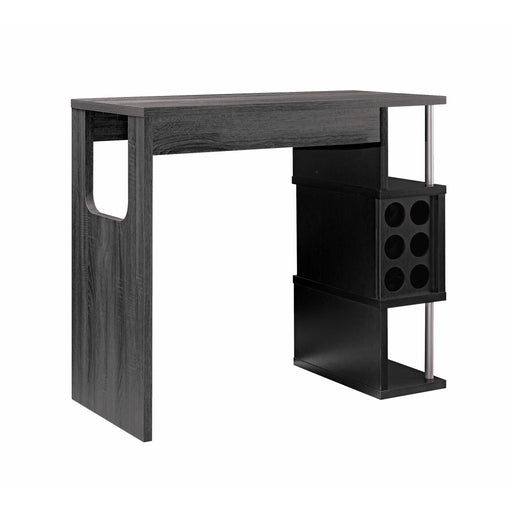 Home Bar Table With Wine Glass Compartment And Three Shelves - Distressed Gray / Black