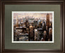 Step into the mesmerizing glow of a city at dusk with this evocative portrayal of Manhattan. The artwork captures the intricate details of the skyline as daylight fades, blending warm hues with the emerging lights of towering skyscrapers. Framed in a rich brown frame with a soft cream mat, this piece adds a touch of urban sophistication and timeless elegance to any living room or office space. Protected by real glass, it ensures vivid colors and sharp detail, inviting you to lose yourself in the vibrant pulse of city life every time you glance its way.