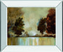 Step into a tranquil world with this serene mixed media wall art that captures the essence of a misty morning landscape. The artwork features soft, earthy tones of brown, green, beige, and blue, blending together in an abstract design that evokes calm and reflection. Encased in a sleek mirrored frame, it reflects light beautifully, adding a touch of elegance and modern sophistication to any living room or office. Crafted with premium real glass, this piece not only protects the textured surface but also enhances the depth and subtle color transitions. Ready to hang and proudly made in the USA, it offers a timeless statement that complements contemporary interiors with its peaceful and luxurious presence.