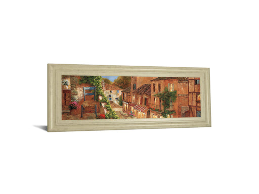 Classy LivingImmerse yourself in the cozy charm of a sunlit village street with "My Balcony." This horizontal framed wall art captures the warm hues of terracot...