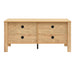 The Thayer 47" TV Console offers stylish storage with a modern organic touch. Crafted from eco-friendly wood in a natural oak finish, it features clean lines, vertical reeded detailing, and rich woodgrain texture. Behind two doors, adjustable shelving and rear cable cutouts provide organized space for electronics, media, and gaming gear—perfect for keeping your entertainment area tidy and streamlined.