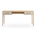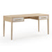 Bring effortless sophistication to your workspace with the Hera Natural Washed Executive Desk. Crafted from Rubberwood with a cerused brushed veneer, it features two soft-close drawers with fabric-textured fronts and solid metal hardware for a refined, high-end look. With a finished back and generous 62" surface, Hera is as stunning in the center of a room as it is against a wall.