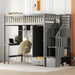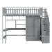Twin Size Loft Bed With Bookshelf, Drawers, Desk, And Wardrobe - Gray