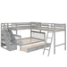 Twin Over Full L Shaped Bunk Bed & 3 Drawers, Ladder And Staircase - Gray