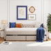 Elegant design: Elegant style Upholstered in carey-selected linen fabric, in elegant beige, feature a diamond-tufted backrest and two armrests with rivets, this daybed not only suits any home décor, but is timeless in its design. The soft textile bedhead creates coziness, while the single color of the design creates versatility.