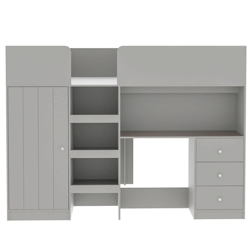 Loft Bed With Built In Wardrobe, Desk, Shelves, And Drawers