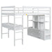 Full Size Loft Bed With Built In Desk, 2 Drawers, Storage Shelves - White