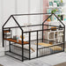 Full Size Bed House Frame With Desk, Shelves, Power Outlets And USB Ports - Black