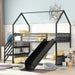 Twin Size Metal Bunk Bed House Bed With Slide And Staircase - Black