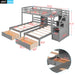 Twin Over Twin & Twin Bunk Bed With Drawers, Staircase Storage, Built In Shelves - Gray