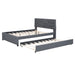 Full Size Upholstered Platform Bed With Brick Pattern Headboard And Twin Size Trundle - Gray