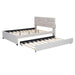Full Size Upholstered Platform Bed With Brick Pattern Headboard And Twin Size Trundle - Beige