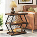 3 Tier End Table Frame With Geometric Design For Living Bedroom - Rustic Brown