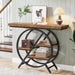 4 Tier Entryway Console Table With Geometric Circle Frame & Storage Shelves - Rustic Brown