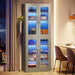 Bookcase With Doors And LED Lighting, 8 Adjustable Shelves Storage Cabinet - Gray