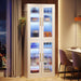 Bookcase With Doors And LED Lighting, 8 Adjustable Shelves Storage Cabinet For Living Room - White